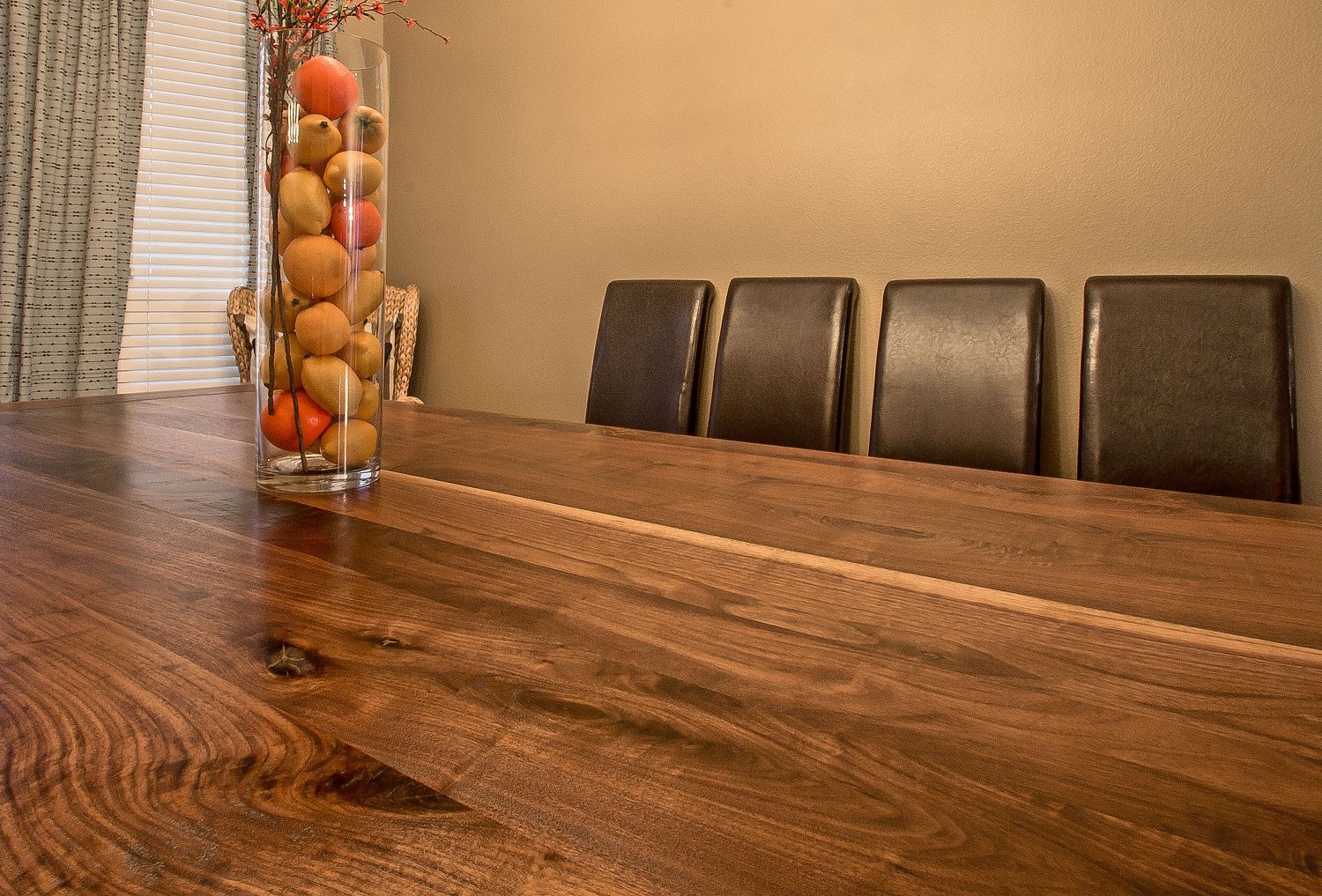 Black Walnut, or Eastern Black Walnut, is a hardwood species that is native to North America.  Typically found growing from Ontario, south to Georgia and Texas, and west to South Dakota, it is known for its use in creating fine furniture around the world.  The heartwood can range from light brown to chocolate brown in appearance; while the sapwood can range from pale yellow to almost white in appearance.   This variation in color between the two along with its durability and sturdiness, is precisely what makes Walnut so appealing to most people who seek it out.